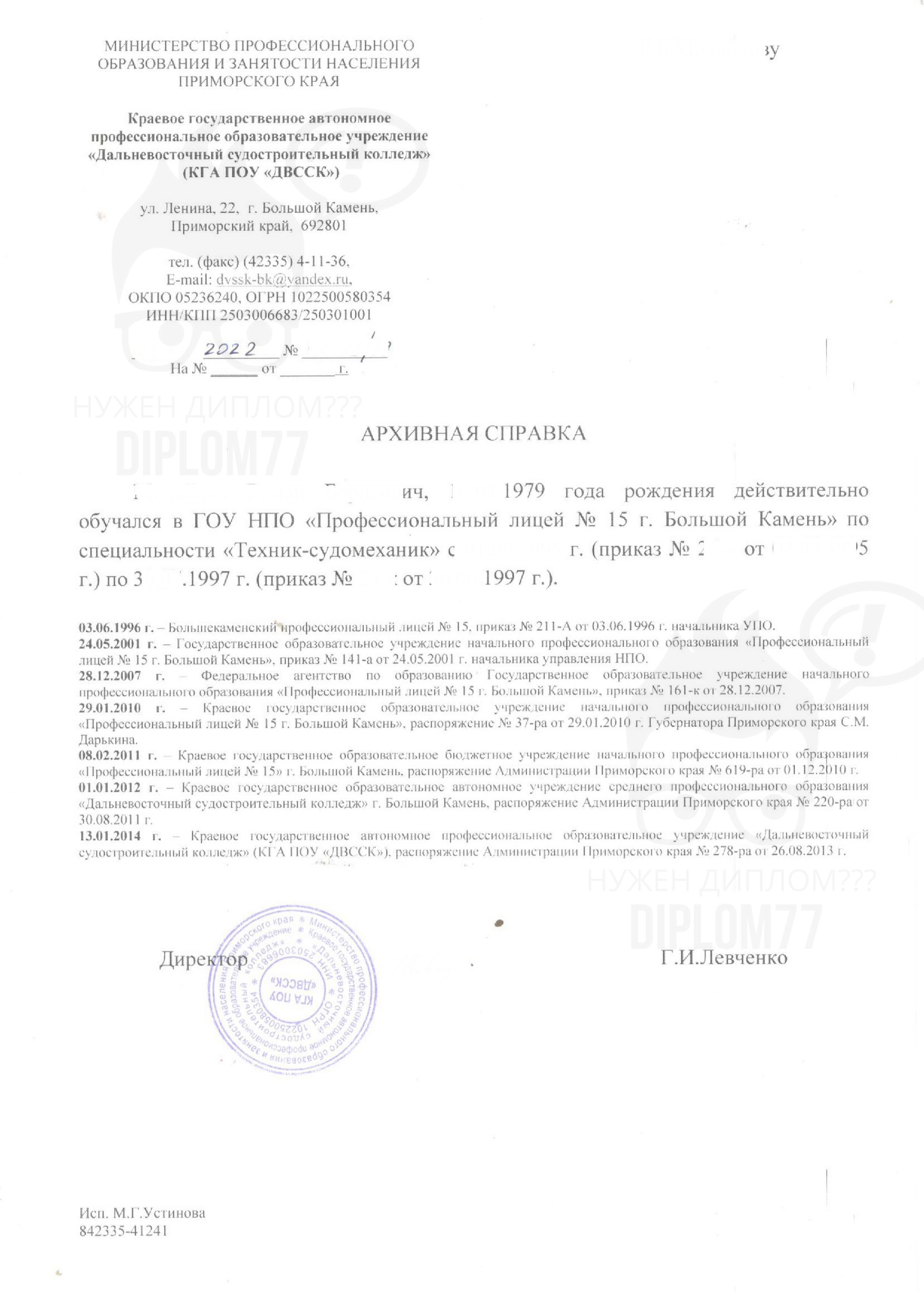 Наша компания «Диплом77» может сделать вам любые архивные справки из архивов России и других стран. Постоянно пополняем нашу базу образов различных учреждений. Всегда готовы сделать архивную справку по вашему образцу.