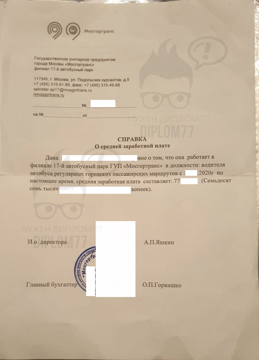Тут я размещу самую обычную справку от Мосгортранса с описанием размера заработной платы. Такой справки достаточно для предъявления в иностранное консульство.